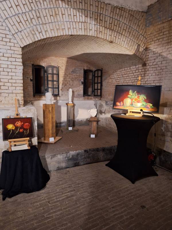 In het indrukwekkende decor van het Hollandse Waterlinie-fort in Vuren kwamen maar liefst 23 kunstenaars samen om hun werk te tonen. Van schilderijen, etsen en beelden tot glaskunst, sieraden, fotografie en zelfs poëzie – de variatie maakte het een kleurrijke ontdekkingsreis voor alle bezoekers.